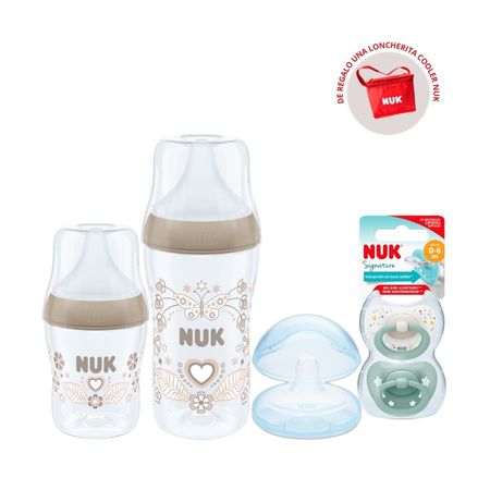 2 Biberones Nuk Perfect Match Plástico Polipropileno (tamaños diferentes) con tetinas de silicona suave que se adaptan al paladar del bebé.